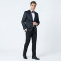 Command attention in this black paisley tuxedo jacket with a shawl lapel and slim fit. Perfect for weddings, proms, and black-tie events. Shop Perfect Tux today.