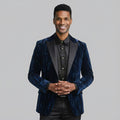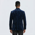 Navy Velvet Pattern Tuxedo Jacket with Peak Lapel – Wedding & Prom
