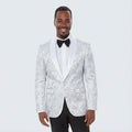 Silver Paisley Tuxedo Jacket with Shawl Lapel – Slim Fit