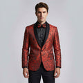 Red Floral Tuxedo Jacket with Shawl Lapel – Wedding & Prom