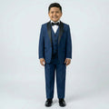 This boys navy blue husky shawl lapel tuxedo set is designed for comfort and confidence, offering a roomier fit without sacrificing formal style. Ideal for weddings, ring bearers, and special occasions, this tuxedo delivers a polished look with kid-friendly comfort throughout the day.