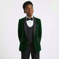 Dress him in style with this boys green velvet 5-piece tuxedo set. Perfect for weddings, ring bearers, and formal events. Shop Perfect Tux today.