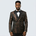 Brown Jacquard Double-Breasted Tuxedo Jacket with Black Satin Peak Lapel – Wedding & Prom