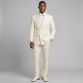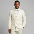 This ivory double breasted tuxedo delivers timeless sophistication with a modern edge. The double-breasted design adds structure and presence, while the classic fit provides comfort and a traditional silhouette. The ivory tone offers a clean, elevated look that pairs perfectly with formal settings, and the non-satin stripe pants create a versatile finish that leans slightly more contemporary while maintaining formal appeal.