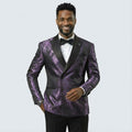 Purple Jacquard Double-Breasted Tuxedo Jacket with Black Satin Peak Lapel – Wedding & Prom