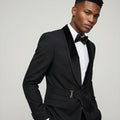 Black Belted Shawl Lapel Tuxedo with Velvet Lapel – Wedding & Prom