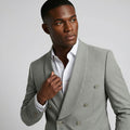 This light grey double breasted suit delivers a clean, modern alternative to traditional dark formalwear. The shawl lapel adds a refined softness to the structured silhouette, while the slim fit tailoring keeps the look sharp and contemporary.