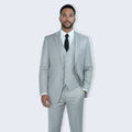 Light Grey 3-Piece Modern Fit Suit with Notch Lapel – Wedding & Prom