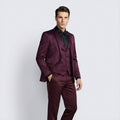 This burgundy slim fit tuxedo blends classic satin elegance with a modern, fashion-forward color. The shawl lapel and tailored silhouette add sophistication, while the four-piece set ensures you’re perfectly coordinated. It’s a confident, standout look for grooms, prom nights, or upscale celebrations.