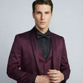 Burgundy Slim Fit Satin Tuxedo – Four Piece Set