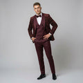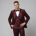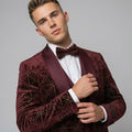 Burgundy Velvet Patterned Shawl Lapel Tuxedo Set – Wedding & Prom