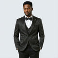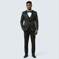 Black Satin Damask 4-Piece Tuxedo Set with Peak Lapel – Wedding & Prom