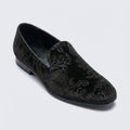 Mens Black Velvet Loafers Paisley Pattern - Shoes