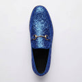 Men’s Royal Blue Glitter Loafers with Buckle – Prom & Wedding Dress Shoes