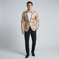 Orange Floral Tuxedo Jacket with Shawl Lapel – Wedding & Prom