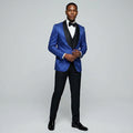 Royal Blue Paisley Skinny Fit Three-Piece Suit – Wedding & Prom