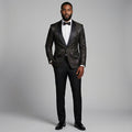 Black Floral Jacquard Shawl Tuxedo Jacket