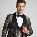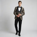 Black & Gold Floral Shawl Lapel Tuxedo Set – Wedding & Prom