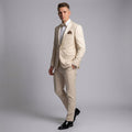 This champagne shawl lapel tuxedo offers a sophisticated alternative to traditional formalwear colors. The slim fit tailoring sharpens your silhouette, while the stretch-blend fabric ensures comfort throughout long events. Premium details like the decorative lining and built-in pocket square give it a refined finish, and the matching adjustable-waist pants help achieve a clean, tailored look.