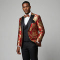 Red & Gold Jacquard Modern Fit Tuxedo Set