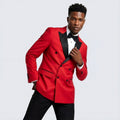 Red Double Breasted Slim Fit Tuxedo with Black Peak Lapel – Wedding & Prom