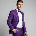 Purple Floral Jacquard Slim Fit 2-Piece Suit