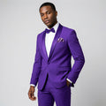 Stand out at prom and weddings in this purple slim fit 2-piece tuxedo with shawl lapel, stretch comfort, and matching bow tie. Shop Perfect Tux now.