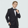 Boys Black 4-Piece Tuxedo Set with Peak Lapel – Wedding