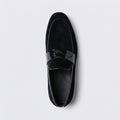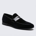 Mens black suede loafer slip on dress shoes. This synthetic, modern style formal shoe is perfect for Weddings, Proms and Other Formal Events. Premium Fully Lined Interior and Full-Length EVA Cushioned Footbed Keeps Your Feet Comfort of Walking and Dancing. Wear it sockless or spotlight it with a thin dress sock, in a contrasting color.