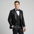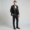 Black Shiny Patterned Shawl Lapel Tuxedo Set – Wedding & Prom