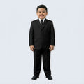 Boy's husky black suit 5-piece set. Husky Fit. Set includes: coat, pants, vest, dress shirt, and necktie. High quality boys suit. Made of exceptional Poly/Rayon blend fabric (65% polyester, 35% rayon). Perfect for weddings, parties, or any other formal event. Product should be dry cleaned. Notice: The husky suits tend to run a little big, please be sure to reference the sizing chart before placing your order. You can find the tab "Sizing Chart" above this product description.