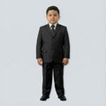 Boy's husky dark grey suit 5-piece set. Husky Fit. Set includes: coat, pants, vest, dress shirt, and necktie. High quality boys suit. Made of exceptional Poly/Rayon blend fabric (65% polyester, 35% rayon). Perfect for weddings, parties, or any other formal event. Product should be dry cleaned. Notice: The husky suits tend to run a little big, please be sure to reference the sizing chart before placing your order. You can find the tab "Sizing Chart" above this product description.