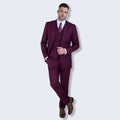 Burgundy 3-Piece Modern Fit Suit with Notch Lapel – Wedding & Prom